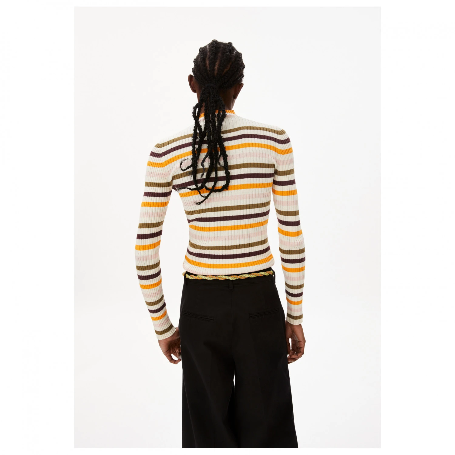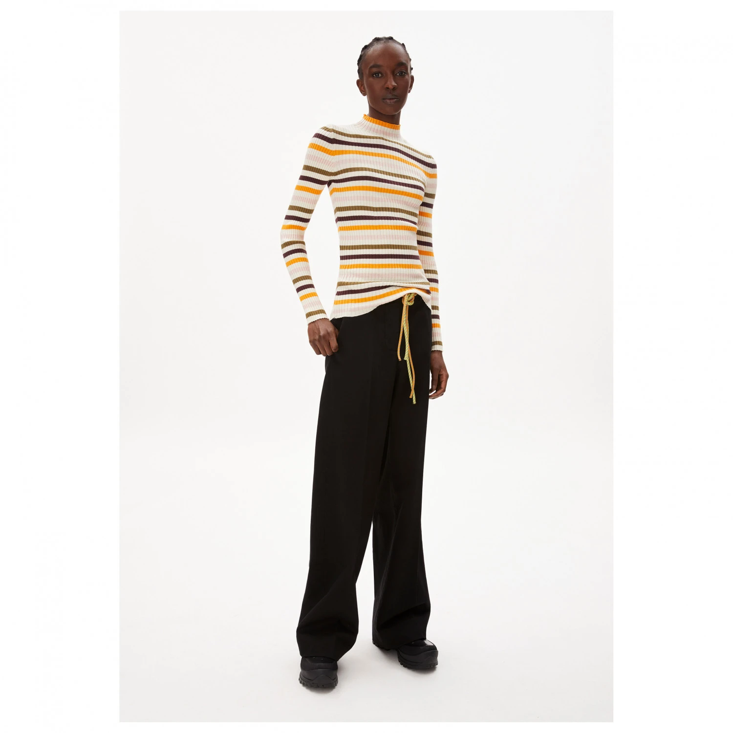 In breiter Rippoptik mit kleinem Stehkragen schmiegt es sich figurschmeichelnd an den Körper und sorgt mit der ausgefallenen Farbkombination für gute Laune am Esstisch, im Büro oder den Ferien. Alltagstauglich wärmt es an kühlen Abenden oder dient als Baselayer im Zwiebellook. Ganz klar, bei ARMEDANGELS wird nachhaltig gearbeitet, so ist auch dieses Shirt aus 100% Bio-Baumwolle gefertigt.