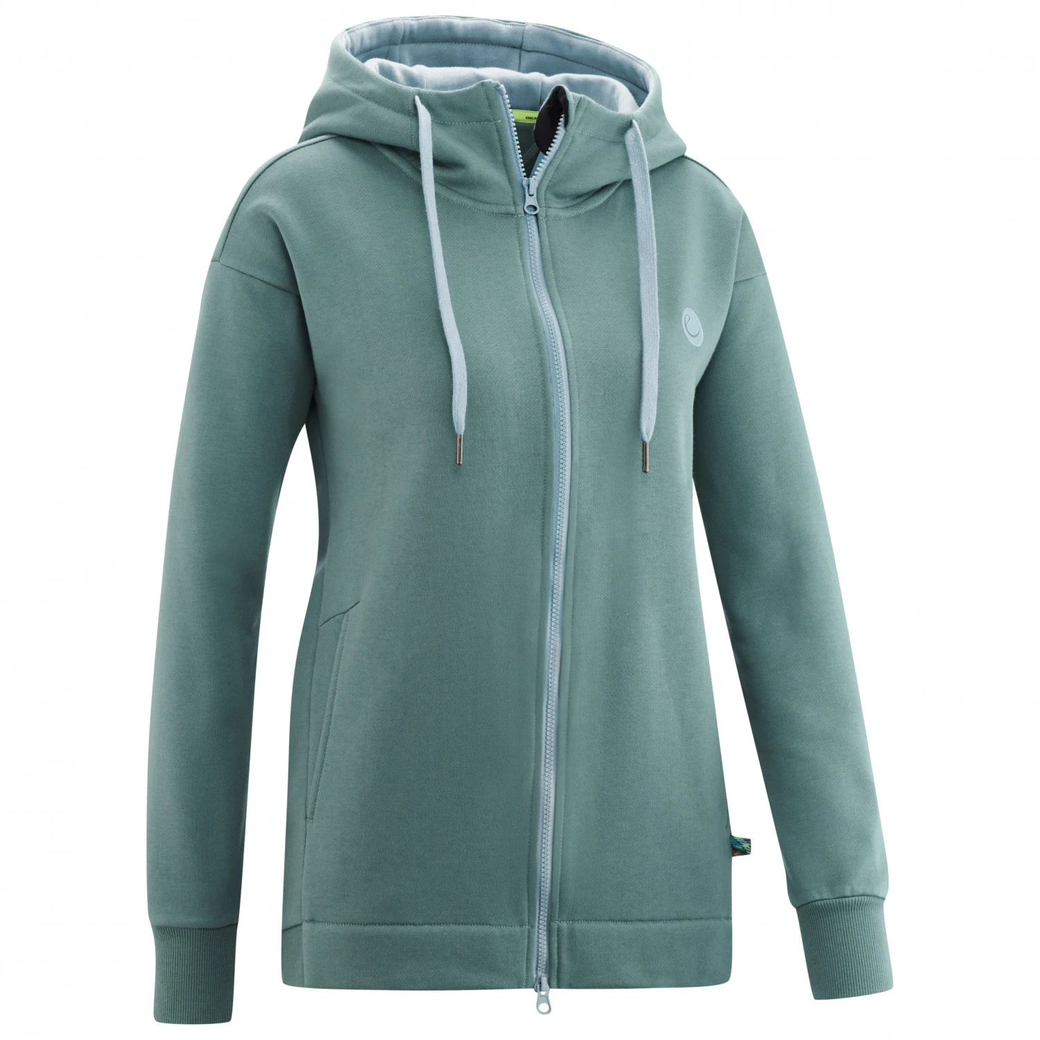 Der Hoodie ist aus einem soften Fleece-Mischgewebe aus biologisch angebauter Baumwolle und recyceltem Polyester gefertigt und fühlt sich einfach mega gut an. Der leicht taillierte Schnitt fällt sportlich aus und schränkt nicht ein. Das Kapuzenfutter ist farblich abgesetzt, der durchgehende Zipper ist mit einem Kinnschutz ausgestattet und die beiden Taschen wärmen kalte Hände auf. Prima!